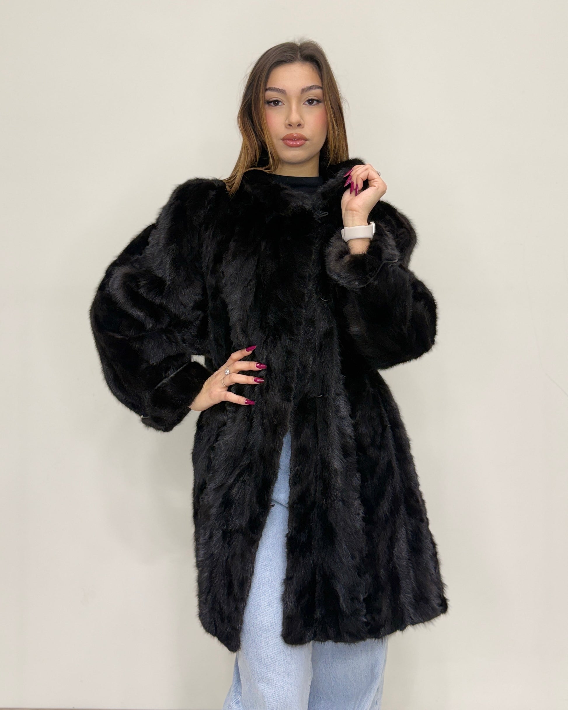 Il capo appartiene a una selezione vintage valorizzata, con la pelliccia curata esternamente nel pelo, mentre modellistica, struttura e parti interne restano originali, nel rispetto dell’identità del prodotto. Un’estetica rinnovata che conserva il carattere autentico del visone.