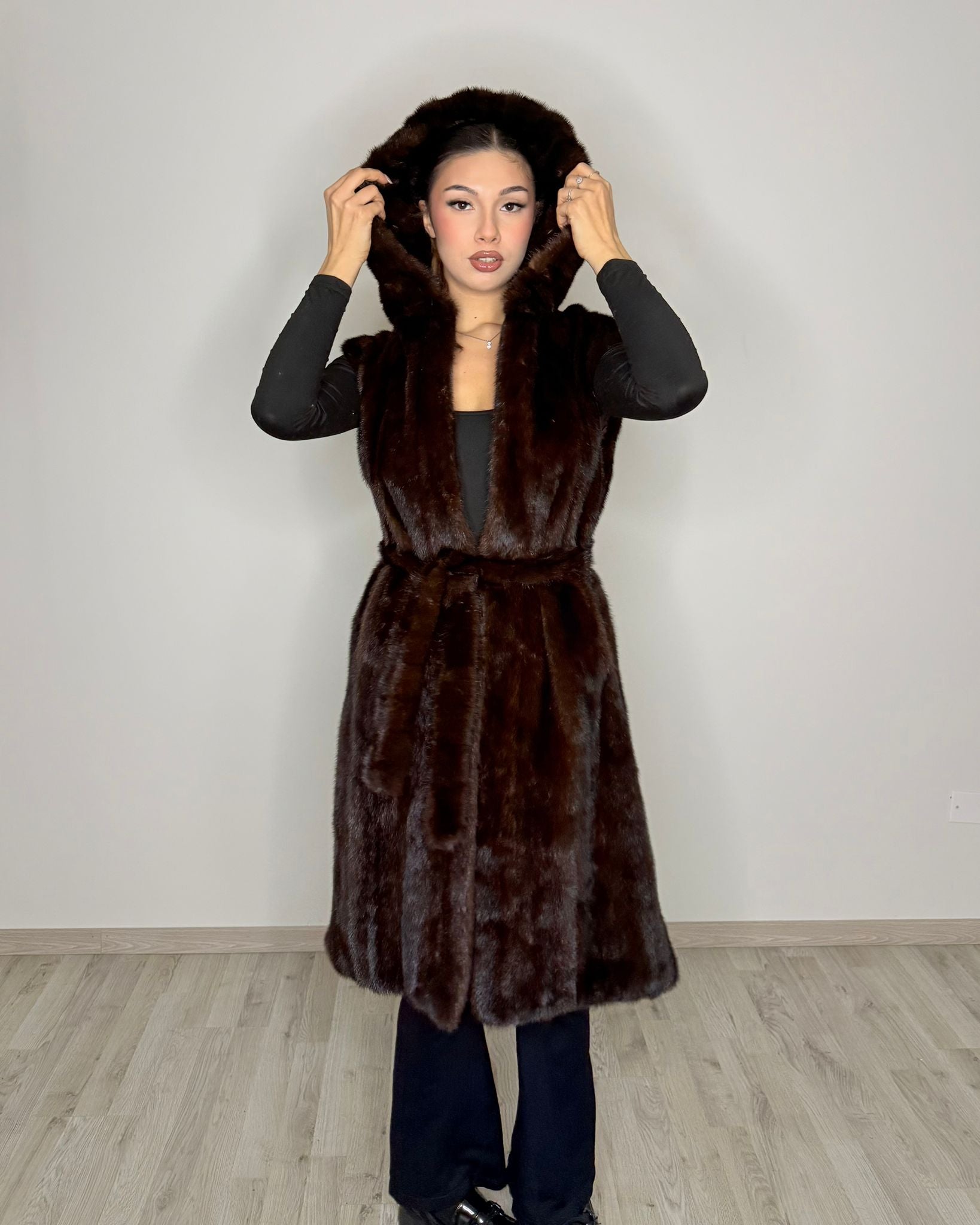 Smanicato in visone maschio autentico rigenerato, caratterizzato da una linea contemporanea e da un’eleganza essenziale. Il cappuccio integrato e le tasche funzionali rendono questo capo pratico e versatile, ideale per completare look raffinati ma dinamici. Il visone maschio, apprezzato per la sua struttura compatta e la texture corposa, conferisce allo smanicato un aspetto deciso e un’elevata sensazione di qualità.