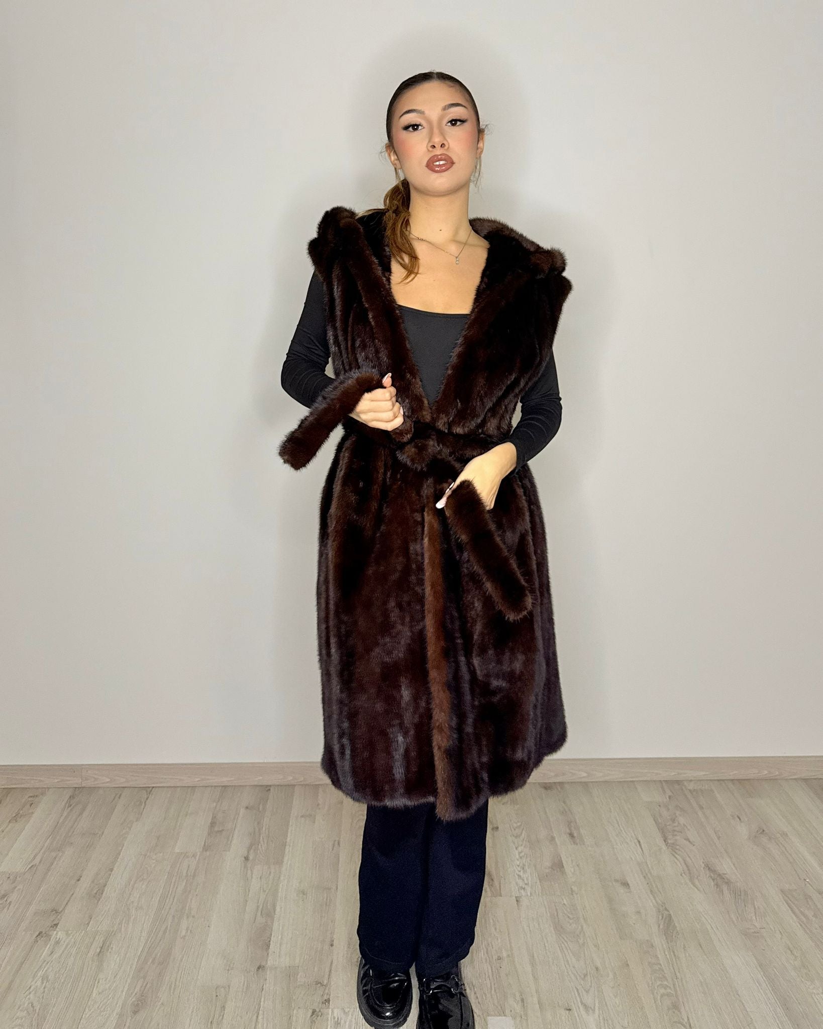 Realizzato con pellicce vere rigenerate da catalogo, questo capo nasce da un processo di selezione e lavorazione artigianale che valorizza la materia prima, rinnovandone l’estetica nel rispetto della tradizione pellicciaia. Ogni smanicato è unico, pensato per chi ricerca pellicce autentiche di lusso dal carattere moderno e responsabile.