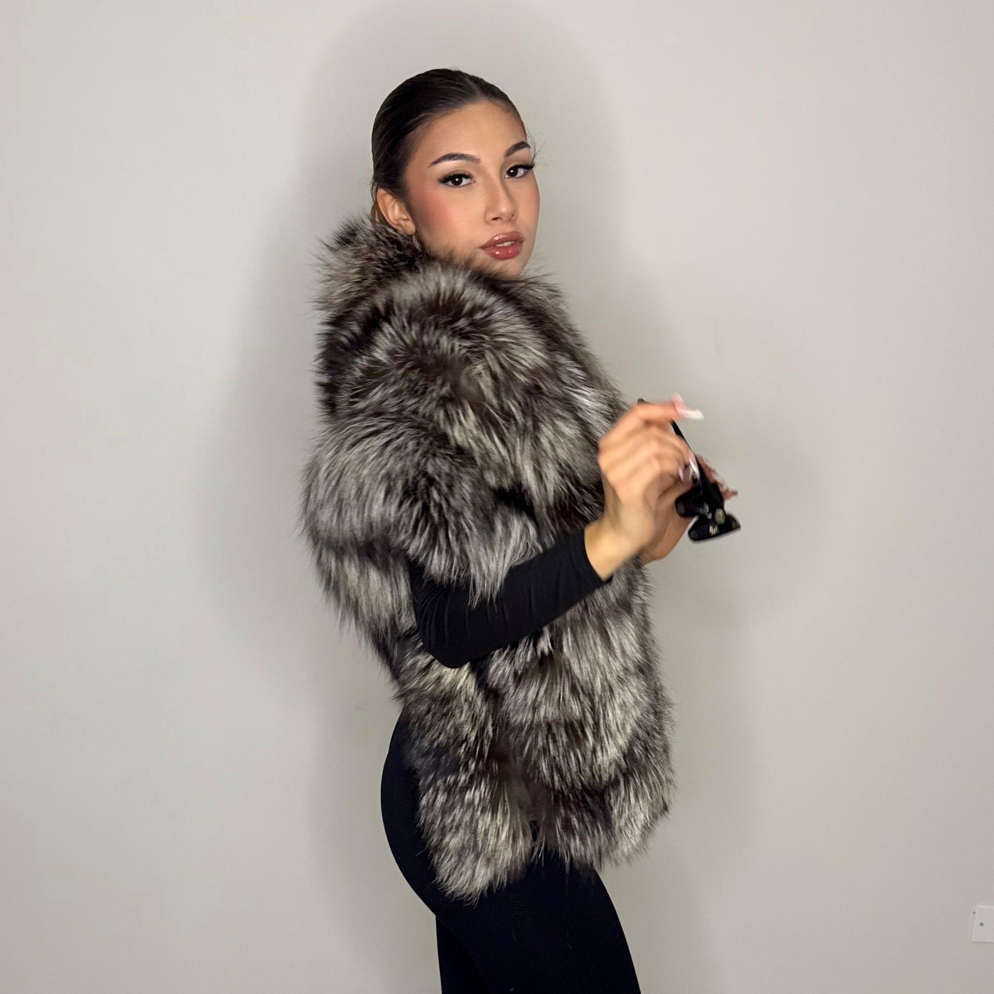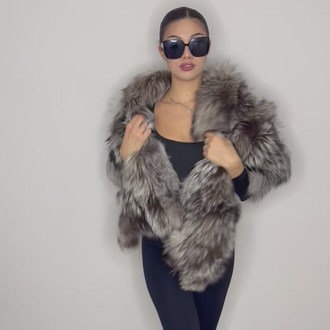 La stola in volpe argentata naturale è un accessorio di alta pellicceria artigianale pensato per chi ricerca lusso, eleganza e qualità senza tempo. Realizzata in pregiata pelliccia di volpe argentata autentica, si distingue per il pelo lungo, morbido e voluminoso e per la raffinata sfumatura grigio argento naturale, luminosa e sofisticata.