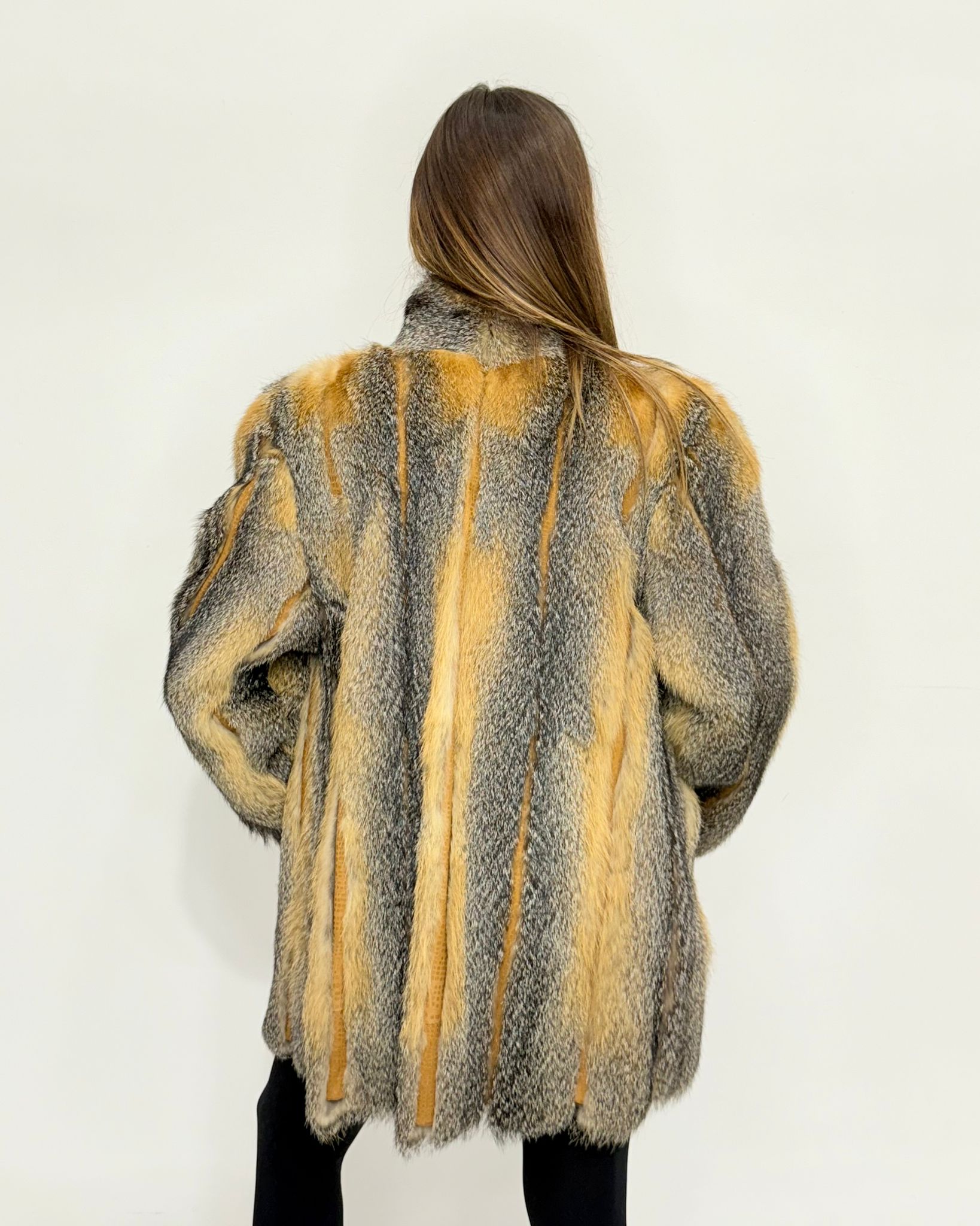 Realizzata a partire da pellicce vere rigenerate da catalogo, questa pelliccia nasce da una lavorazione artigianale attenta ai dettagli, pensata per valorizzare la qualità naturale della materia prima e rinnovarne lo stile. Gli inserti in pelle aggiungono definizione alla silhouette e rendono il capo versatile, ideale per chi desidera una pelliccia autentica dal gusto attuale.